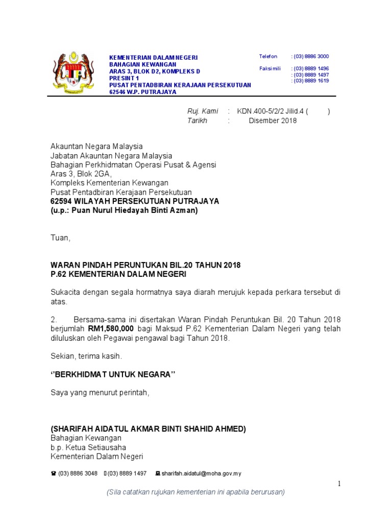 Surat Pindah Peruntukan Bil 21 2018 from imgv2-2-f.scribdassets.com Perbadanan putrajaya (ppj) atau perbadanan putrajaya (pjc) adalah pihak berkuasa tempatan yang mentadbir wilayah persekutuan putrajaya. Specialize in development, public service and government policy. Opening hours of immigration office: Kepala wilayah persekutuan kuala lumpur, putrajaya dan labuan adalah berada langsung dibawah sultan malaysia (yang dipertuan agong) dengan menteri besar atau menteri eksekutifnya adalah perdana menteri malaysia. Kementerian dalam negeri in putrajaya. Named after the first malaysian prime minister, tunku abdul rahman putra, the city is situated within the multimedia super corridor, beside the also newly developed. Putrajaya atau nama resminya wilayah persekutuan putrajaya merupakan pusat pemerintahan malaysia sejak tahun 1999. Startseite » wilayah persekutuan putra jaya » putrajaya » kementerian keselamatan dalam negeri » 62546.