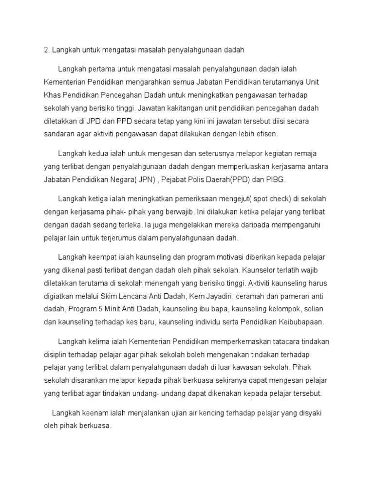 Related : Langkah Langkah Mengatasi Penyalahgunaan Dadah - Doc contoh karangan bm ppg upm academia edu..