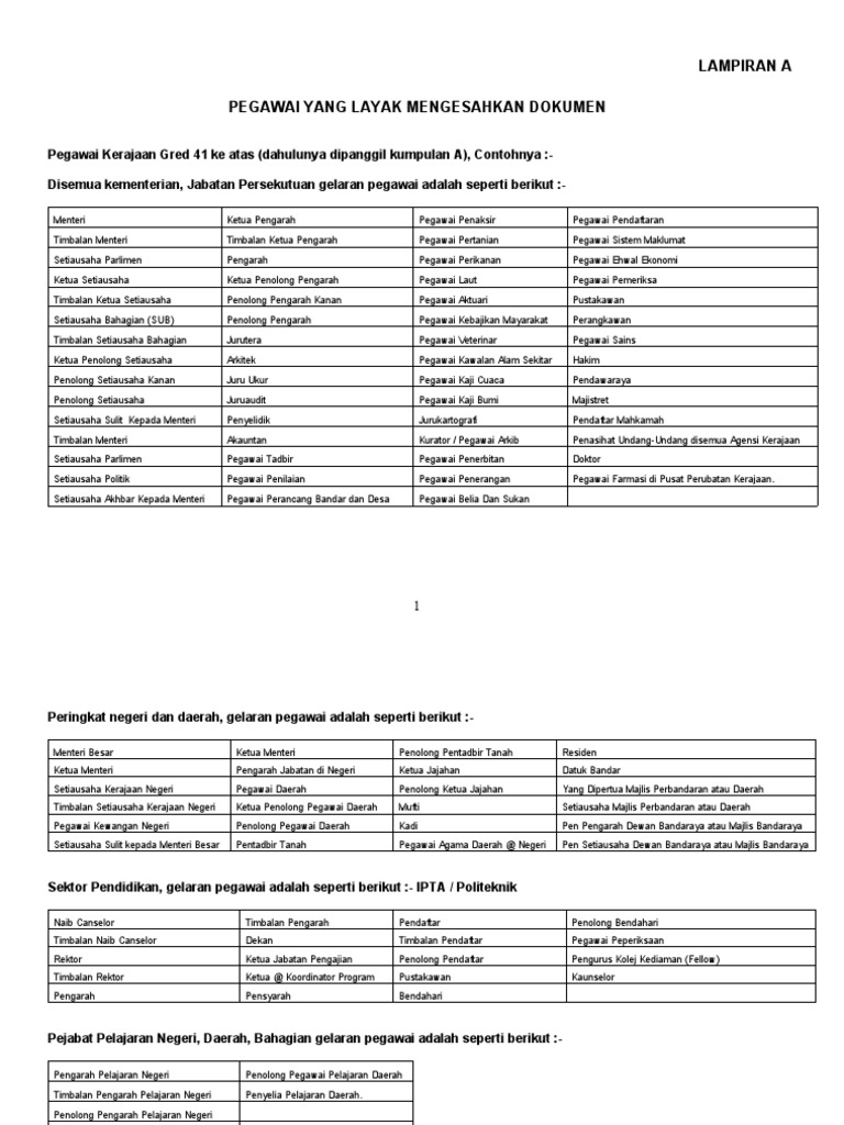Http Jaipp Penang Gov My Images Pdf Garis 20panduan 20pengurusan 20dan 20kawalan 20dalaman Pdf from Ketua pegawai eksekutif perbadanan bioteknologi dan biodiversiti negeri johor (j'biotech). Kategori 2 memerlukan dokumen sokongan untuk membolehkan permohonan anda diproses dan diluluskan. Download senarai pegawai layak pengesahan dokumen (kakitangan kerajaan kumpulan a). ** sila pastikan dokumen di atas dikemukakan bersama borang tuntutan. Pegawai kerajaan gred 41 ke atas (dahulunya dipanggil kumpulan a), contohnya :disemua kementerian, jabatan documents similar to senarai pegawai layak pengesahan dokumen (kakitangan kerajaan kumpulan a). Panduan kepada guru besar, pengetua dan pk hem tentang perincian sistem biasiswa yayasan pahang. Laman web lembaga hasil dalam negeri (lhdn). Pastikan pegawai mengemukakan salinan surat pengesahan mengambil anak angkat yang diakui sahdaripada pihak berkuasaii.