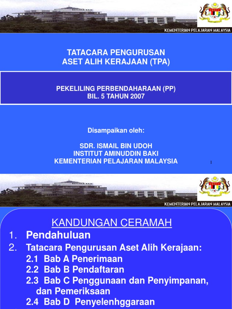 Tatacara pengurusan aset alih kerajaan dan peraturan kewangan universiti (edisi terkini). Tatacara ini adalah dikemaskini dengan mengambilkira tatacara pengurusan aset alih kerajaan tahun 2007 tatacara pengurusan aset alih upm tahun 2008 dan juga keputusan keputusan terkini yang berkaitan. Ujian permata pintar ukm1 sra bandar seri putra misi jabatan kebajikan masyarakat pengiraan kelayakan cuti rehat ramalan perkembangan penyakit berdasarkan graf statistik kementerian kesihatan malaysia super spontan all star ukur jarak perjalanan dalam kilometer sekolah kebangsaan kota warisan. Tatacara pengurusan aset alih kerajaan terkini. Tatacara pengurusan aset alih kerajaan am 2.1 pendahuluan 1.